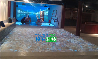投石智能系統(tǒng)通過龍舟競渡虛擬仿真、踩螃蟹地面互動投影系統(tǒng)、虛擬翻書、電子沙盤、觸摸屏等高科技互動技術(shù),分別介紹南京市高淳縣旅游景點分布、交通、城市發(fā)展等方面的內(nèi)容。龍舟競渡虛擬仿真展項通過設(shè)置了2條龍舟,每條龍舟可同時乘坐4人,三維場景均根據(jù)高淳縣現(xiàn)場實景采集建模制作,借助于基于硬件的投石互動傳感驅(qū)動系統(tǒng),實現(xiàn)參與者劃動船漿速度快、慢時,弧幕畫面速度顯示實時變化。