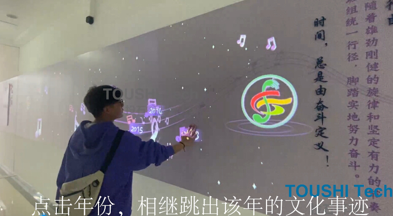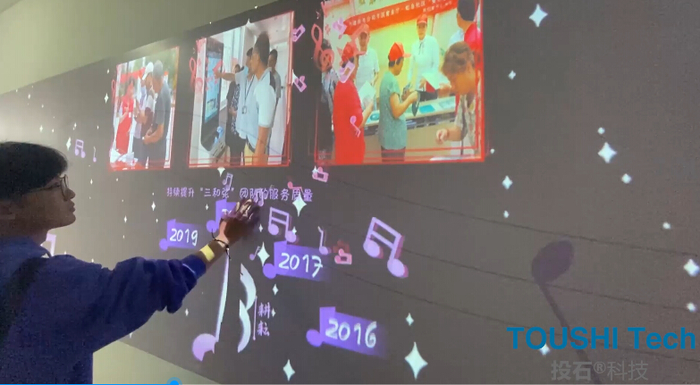 時(shí)間,總是由奮斗定義!2021年3月,南京投石智能系統(tǒng)為江蘇國家電網(wǎng)南通供電公司智慧能源展廳提供3通道觸摸墻互動裝置。投石智能系統(tǒng)雷達(dá)觸摸墻互動裝置它是由投影機(jī)、融合軟件、激光觸摸感應(yīng)設(shè)備、互動控制軟件等組成,可支持多人一起互動觸控操作。當(dāng)體驗(yàn)者觸摸互動墻,屏幕上就會冒出各種魔幻的浮動特效,比如各種動物、花、音樂、卡通人等等,效果極具科技感。在展館展廳內(nèi),可以通過海量圖片、視頻等等來集中展示企業(yè)事業(yè)單位大事件、企業(yè)文化等。
