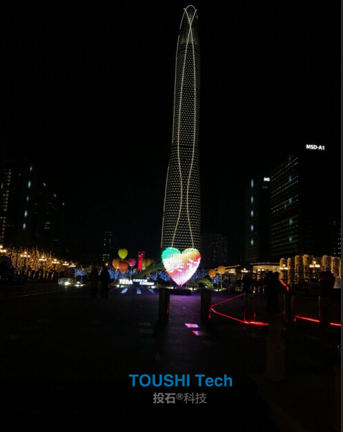 晚8點,所有嘉賓到場共同啟動投石智能系統(tǒng)城市心跳互動裝置。隨著啟動裝置“濱海之心”發(fā)出的指令,這座濱海新區(qū)乃至天津市的新地標由底部到頂部逐層躍起耀目的燈光,八條LED燈帶沿主建筑流線沖宵而上,三萬多顆白色LED交相閃耀,呈現(xiàn)出飛線流霞、水波瀲滟、碧空行云、星光璀璨等近20種燈光效果,整個大廈通體銀裝。隨后將進行無人機表演和相關文藝演出。