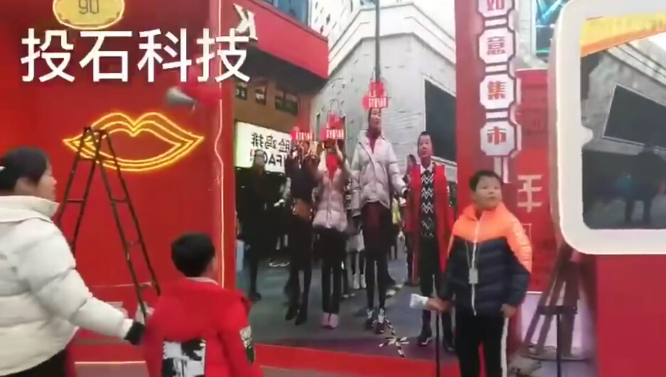 項(xiàng)目?jī)?nèi)容:南京投石智能系統(tǒng)AR頭頂福袋互動(dòng)裝置助力蘇寧福氣小鎮(zhèn)南京新街口巡展。