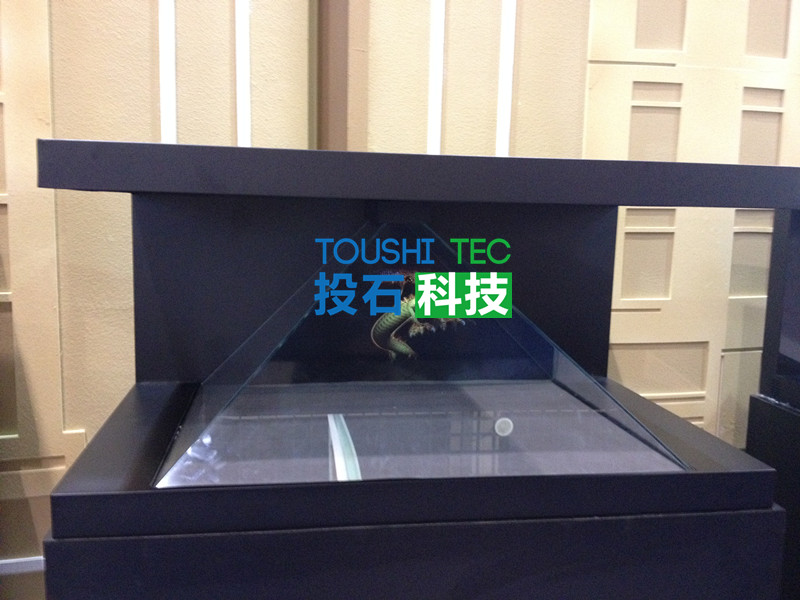 投石通過三維建模,將音像裝置置于金字塔成像幕頂部,影像通過折射從而在正金字塔形成像幕中呈現(xiàn)幻象。三維影像直接懸浮在空中,房展會中的樣板房以三維影像呈現(xiàn),讓人們無需佩戴眼鏡便可觀看3D視效,空間感、立體感極強。當參觀者站在270全息柜前,可以多角度的參觀樣板房,身臨其近。