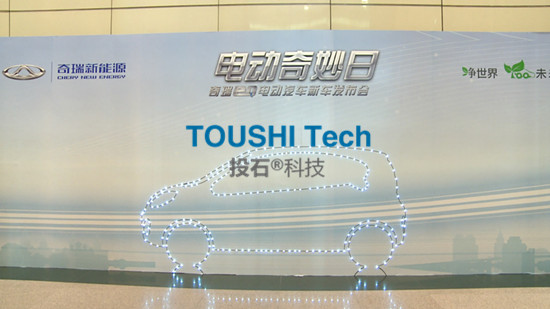 2014年10月中旬,投石智能系統(tǒng)攜手奧美廣告,服務(wù)于奇瑞eQ電動汽車新車發(fā)布會,用光影成像的方式亮相新車,以車體為投影背景呈現(xiàn)各種3D科幻效果。新車發(fā)布會于2014年11月5日在上海國際會議中心舉辦。投石智能系統(tǒng)曾先后服務(wù)于廣汽本田理念S1上市樂享會、廣汽豐田致炫廣發(fā)布會、保時捷卡宴發(fā)布會、一汽大眾奧迪"品鑒會"發(fā)布會等品牌汽車發(fā)布會,對發(fā)布會汽車多媒體表演經(jīng)驗豐富。
