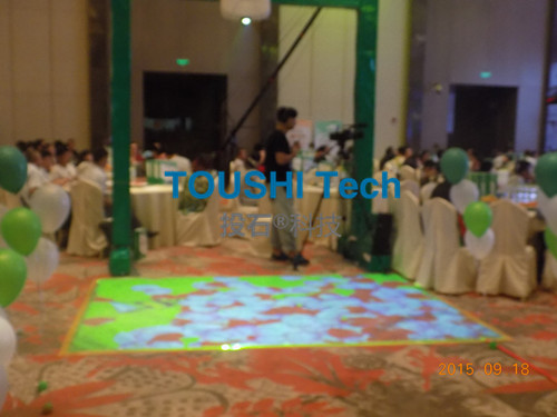 項(xiàng)目背景:2015年9月中旬,徐州淮海醫(yī)藥經(jīng)過多家考察最終決定向投石智能系統(tǒng)租賃地面互動(dòng)投影系統(tǒng)以及水汽投影系統(tǒng)各一套。該系統(tǒng)用于淮海醫(yī)藥網(wǎng)周年慶參會(huì)人員互動(dòng)體驗(yàn)。本次項(xiàng)目內(nèi)容包括軟件硬件設(shè)備、運(yùn)維服務(wù)、安裝調(diào)試和有關(guān)輔材。
