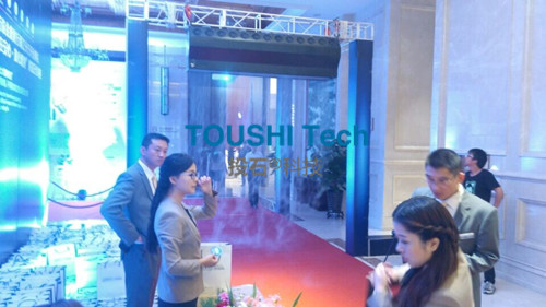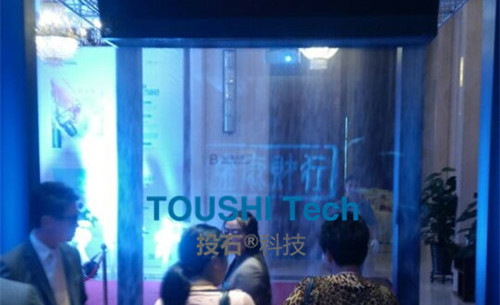 項目背景:2015年9月中旬,金鹿財行鎮(zhèn)江分行經(jīng)過多家考察最終決定向投石智能系統(tǒng)租賃水汽投影系統(tǒng)一套。該系統(tǒng)用于參會人員互動體驗。本次項目內(nèi)容包括軟件硬件設備、運維服務、安裝調(diào)試和有關輔材。