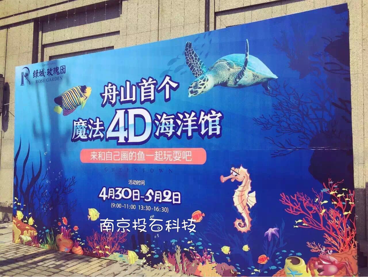 項目背景:2016年五一假期,浙江省舟山市綠城玫瑰園向投石智能系統(tǒng)租賃3D魔幻魚技術一套。該系統(tǒng)用于樓盤促銷活動參會人員互動體驗。本次項目內容包括軟件硬件設備、運維服務、安裝調試和有關輔材。全城征集最有創(chuàng)意的魚,和自己畫的魚一起玩耍,暢游奇趣海底世界,一切盡在浙江省舟山市綠城玫瑰園4D海洋館。