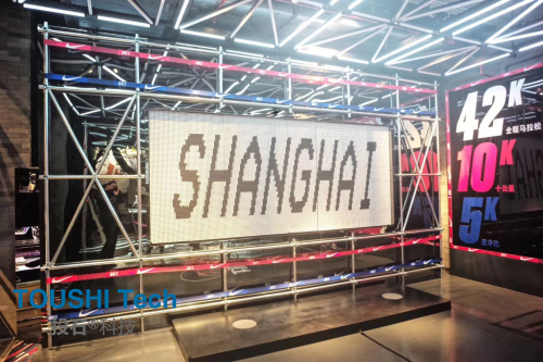 項目內(nèi)容:南京投石智能系統(tǒng)在上海為Nike 耐克品牌提供磁力翻轉(zhuǎn)點(diǎn)陣屏。
