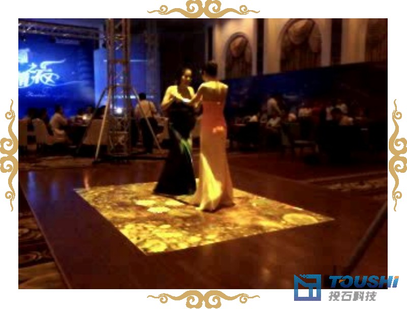 2011年7月8日,南京投石智能系統(tǒng)有限公司作為阿里斯頓熱能集團的互動多媒體供應商,為阿里斯頓2011年供暖高峰論壇黃山晚宴提供雙通道互動地面投影舞池,互動墻面感應墻等新穎、低碳的高科技體驗產品,投石地面互動投影系統(tǒng)通過影像動作識別,機器視覺等技術,結合全新的創(chuàng)意表現(xiàn)形式,提供了多達數(shù)十種動態(tài)絢麗的互動效果。阿里斯頓熱能集團一向注重對最新技術的投入,此次選擇南京投石智能系統(tǒng)有限公司為其活動提供互動體驗展示,吸引了眼球和關注,并贏得了來賓的一致好評.