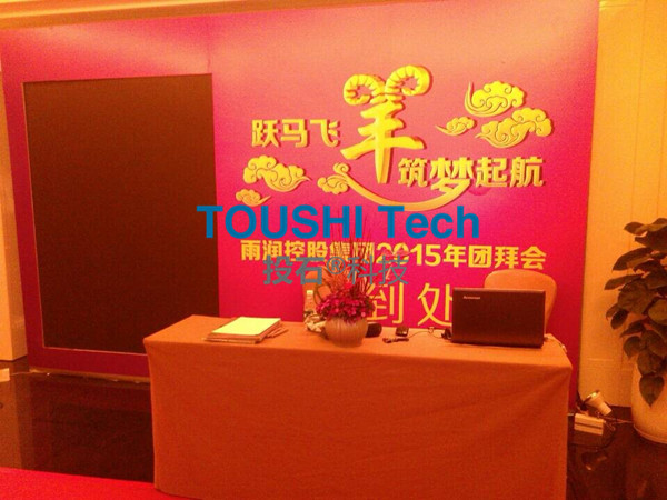 項目背景:2014年12月下旬,雨潤集團2015年團拜會向南京投石智能系統(tǒng)租賃了二維碼簽到軟件系統(tǒng)一套以及多套掃碼槍等多媒體系統(tǒng)。包括負(fù)責(zé)該項目的制作,安裝施工以及多媒體一體化整包服務(wù)。