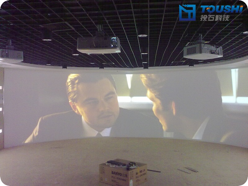 2011年12月上旬,南京投石智能系統(tǒng)有限公司實(shí)施完成淮安市煙草公司企業(yè)休閑展廳多媒體系統(tǒng)工程。這是繼完成南通市煙草公司等煙草行業(yè)企業(yè)文化展廳建設(shè)之后,南京投石智能系統(tǒng)有限公司又一例煙草行業(yè)展廳多媒體工程成功案例。本項(xiàng)目中,投石弧幕系統(tǒng)采用三通道桌面融合技術(shù),采用三臺(tái)三洋XM1000C伍仟流明高流明投影機(jī)和正投融合專用幕布,形成弧度131度,弧長8.77米,高度2.37米的弧形觀影區(qū),結(jié)合YAMAHA5.1音響功放系統(tǒng)的完美結(jié)合,為用戶帶來氣勢(shì)磅礴、場(chǎng)景宏偉的觀看感受。在墻面投影沙盤區(qū)域,參觀者可以通過桌面式22寸觸控一體機(jī)選擇播放相應(yīng)的視頻片段投影。