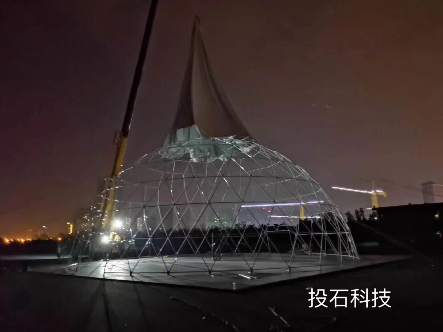 360戶外球幕球體主結(jié)構(gòu)采用合金鋼管標(biāo)準(zhǔn)件拼裝構(gòu)成,球體直徑20米,高9米的半球體采用PVC篷布里外覆蓋,所有材料均達(dá)到防火B(yǎng)1級(jí)標(biāo)準(zhǔn),設(shè)有兩個(gè)安全出入口,外層覆蓋幕布整體吊裝完成,球體鋼架現(xiàn)場(chǎng)拼裝,拼裝時(shí)間短,安全快捷,球體周邊有固定碼,即保證球體安全抗風(fēng)能力,又不影響原地面基層設(shè)施。