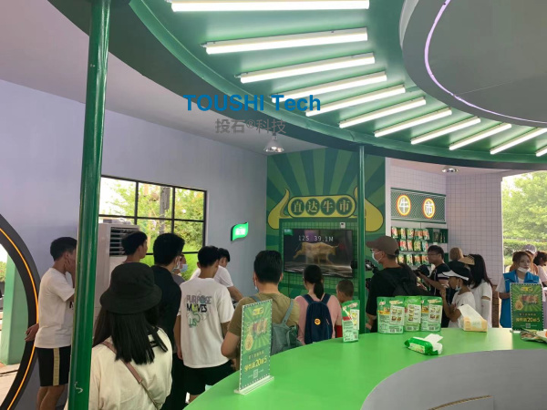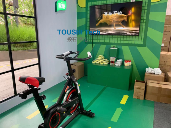 項目內容:2021年7月10日-11日,南京投石智能系統(tǒng)在北京望京小街為盒馬×聯合利華家樂調味品提供騎行控制裝置。體驗者通過單車騎行控制屏幕三維牛的跑步速度,最后扭蛋機出扭蛋一個。