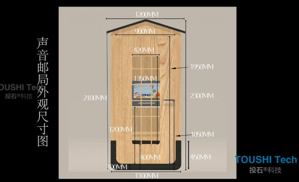 聲音郵局外觀造型采取多層實木制作,外觀尺寸如圖所示: