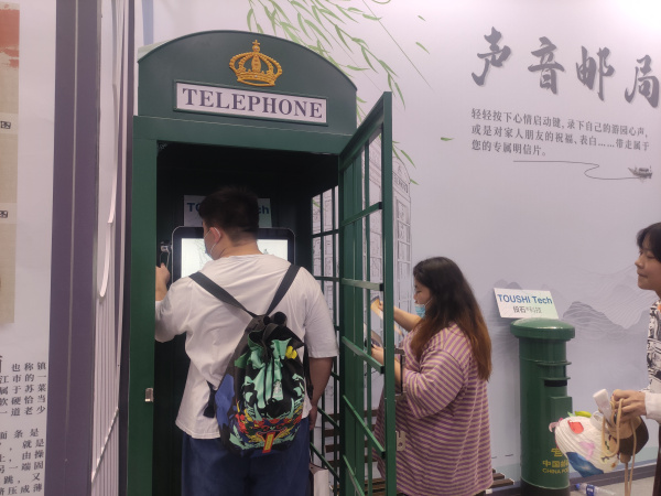 聲音郵局互動(dòng)裝置,一種情感,一種夢(mèng)想,一種文化+科技的載體。用聲音傳遞情感,記錄生活軌跡。 圖:觀眾體驗(yàn)聲音郵局互動(dòng)裝置