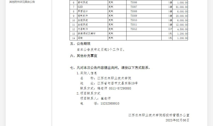 圖:江蘇農(nóng)林職業(yè)技術學院官網(wǎng)中標公告