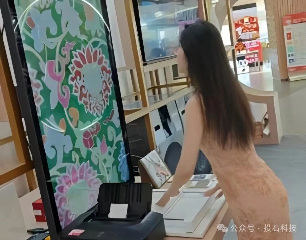 投石數(shù)字非遺織機(jī)裝置讓每個(gè)普通人都有機(jī)會(huì)成為“織錦大師”!體驗(yàn)者通過(guò)觸摸屏選擇喜歡的顏色和紋樣,然后推動(dòng)搖桿,它會(huì)自動(dòng)“織”出?幅融合了云錦元素和品牌科技美學(xué)的數(shù)字織錦,然后還可以實(shí)時(shí)打印出來(lái)帶回家哦!