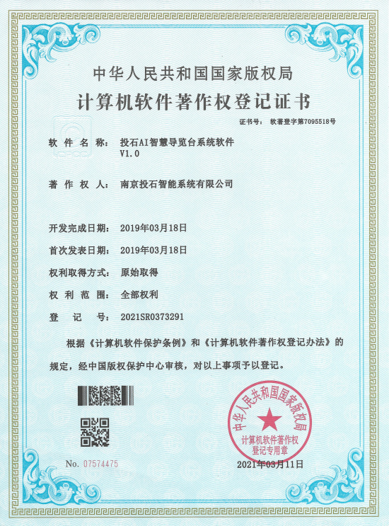 南京投石智能系統(tǒng)有限公司是國家級高新技術(shù)企業(yè)和軟件認證企業(yè),榮獲中國展覽館協(xié)會展覽工程企業(yè)二級資質(zhì)、中國展覽館協(xié)會展覽陳列工程設(shè)計與施工一體化二級資質(zhì)、先后獲得美國繆斯設(shè)計獎金獎和銀獎、法國設(shè)計獎銀獎、2025年南京市玄武區(qū)人工智能企業(yè)商會會長單位。