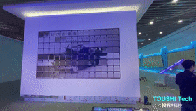 翻頁(yè)機(jī)械屏包含112個(gè)(8*14組裝)十二面翻牌單元。單個(gè)翻牌單元尺寸:262mm(高)*260(寬)?,F(xiàn)場(chǎng)安裝后的整體尺寸:2096mm(高)*3640mm(寬),每個(gè)單元12幅畫(huà)。