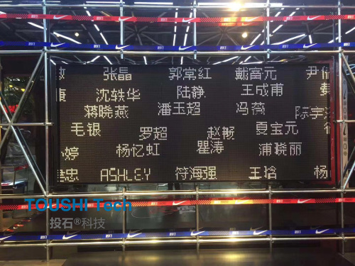 2018年11月,上海徐匯區(qū)淮海中路717號(hào),南京投石智能系統(tǒng)在上海為Nike 耐克品牌提供磁力翻轉(zhuǎn)點(diǎn)陣屏。