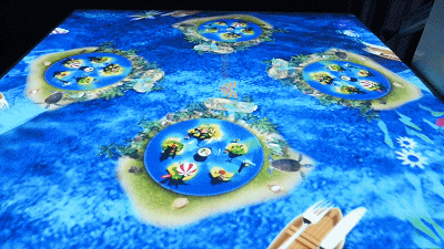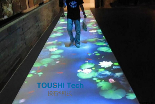 當你踏入投影機投射在客廳、長廊、臥室地面上的影像時,投影幕上的虛擬場景會根據你雙手或雙腳上的動作進行相應的反饋,各種互動效果就會隨著你的肢體動作產生相應的變化,讓你進入一種似真似幻、趣味十足的奇妙世界。我們的互動效果包括翻轉、碰撞、避讓、跟隨、擦除、水波紋抖動等表現(xiàn)形式。
