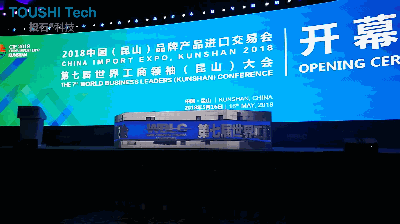 這是2018年5月南京投石智能系統(tǒng)在昆山為品牌產(chǎn)品進(jìn)口交易會提供3dmapping旋轉(zhuǎn)字啟動臺項目服務(wù)。