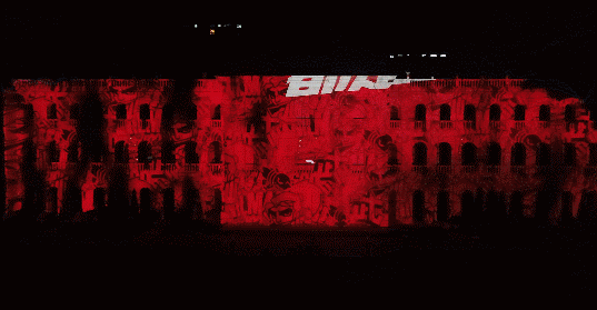 接著,大龍通過3D投影,從建筑物中一層一層的破墻而出,出現(xiàn)在了觀眾的眼前,這一幕將大家一下子都鎮(zhèn)住了。