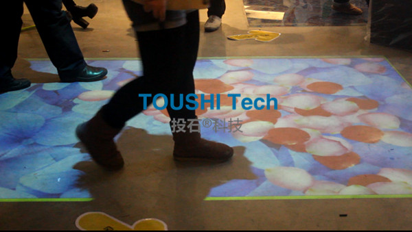 投石地面互動投影系統(tǒng)通過影像動作識別,機(jī)器視覺等技術(shù),結(jié)合全新的創(chuàng)意表現(xiàn)形式,提供了多達(dá)數(shù)十種動態(tài)絢麗的互動效果,引起眾多參觀者駐足嬉戲.譬如當(dāng)游客步入投影在地面上的水池動畫畫面時,魚兒像受了驚嚇,紛紛游開,當(dāng)游客一離開,魚兒又會正常游動,一切都如同身臨其境,從而營造一個美麗虛幻的魔幻空間,將不可能變?yōu)榭赡埽瑢⒂慰蛶胍环N虛實(shí)融合、亦真亦幻的奇妙世界。投石地面互動投影系統(tǒng)自帶近40多款互動游戲,極大地滿足了市場上常見的互動游戲需求。