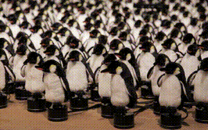 企鵝們在表演的過程中所傳遞出的謎一樣精確的舞蹈編排讓這個(gè)作品變得異常的可愛,仿佛企鵝們有一個(gè)大腦中樞,在告訴它們應(yīng)該朝哪個(gè)方向看。