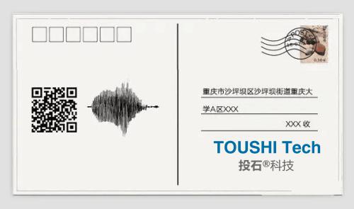 走進(jìn)投石智能系統(tǒng)為保小天提供的聲音郵局,用錄音設(shè)備錄下你的心情、故事或者祝福,然后會(huì)生成一張帶有二維碼的聲音明信片,再從郵局寄給遠(yuǎn)方的親人和朋友。