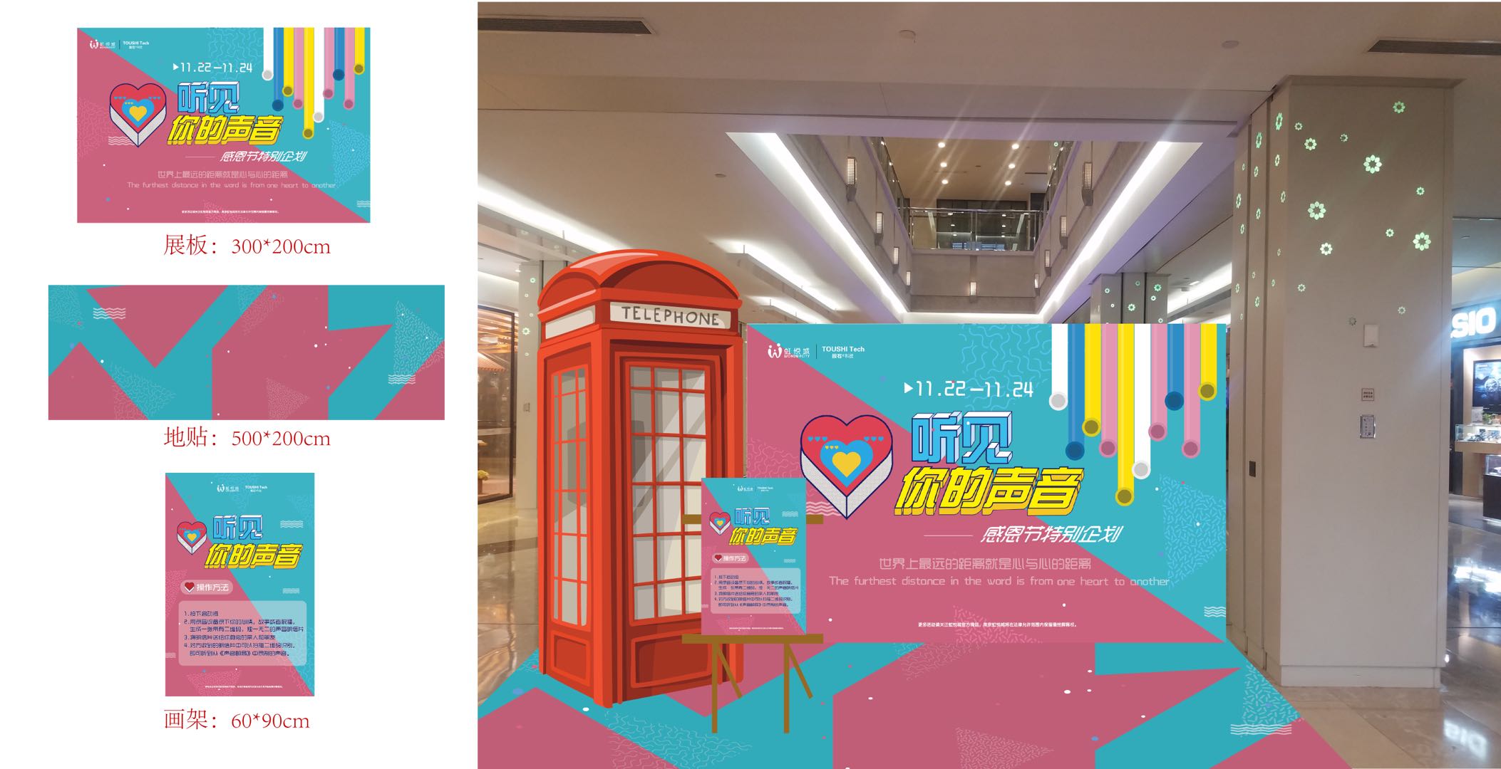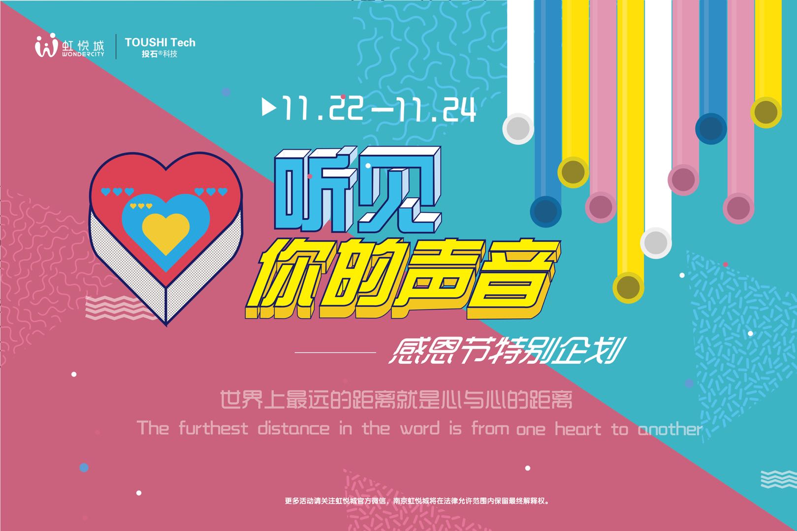2018年11月22日-24日,投石智能系統(tǒng)品牌活動(dòng)“2018聽見你的聲音”—南京虹悅城感恩節(jié)聲音郵局互動(dòng)裝置,知足,感恩。