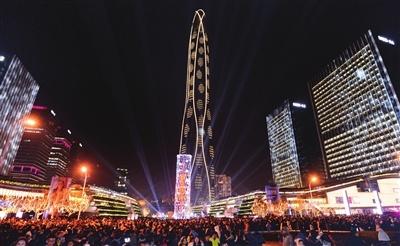 天津市濱海新區(qū)的地標(biāo)性建筑,天津周大福金融中心于2018年年底竣工并于2018年12月31日舉行跨年燈光秀活動(dòng)。
