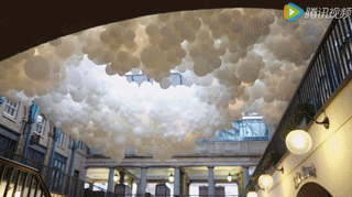 整個裝置全長54米,寬12米,它飄在考文特花園市場天花板上,好似白云漂浮在藍天上一般,極具視覺震撼力,讓人有伸手去抱的沖動。
