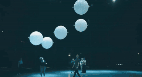 這件低分辨率的結構裝置整個表演一共是25分鐘,根據氣流不斷改變氣球的移動,配合音樂的變化,燈光會隨著化,讓觀眾沉浸在一個美妙的視聽體驗中。