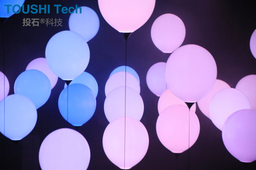 這種氣球與燈光結合的藝術互動裝置制造的夢幻場景,太適合和小伙伴們一起來拍照啦!不僅適合拍照,還適合談戀愛、適合告白、適合求婚等等!喜歡互動裝置的朋友可以關注我們投石智能系統(tǒng),這里不定期分享好玩有趣的互動產品。快來和小伙伴在氣球云里玩耍拍照吧!