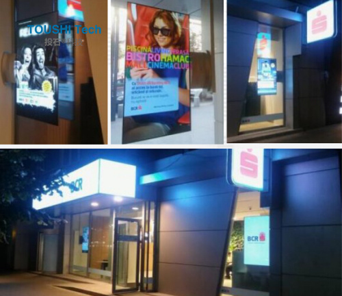 BCR銀行是羅馬尼亞最大的國有控股銀行,業(yè)務(wù)廣泛,每天迎來?同行業(yè)的客戶。設(shè)計人員在新開的支行窗戶前安裝了兩套55寸雙面型OLED顯示單屏。超薄機身,直接貼窗安裝,雙平面媒體播放體驗,為支行增添了一道亮麗的風景。