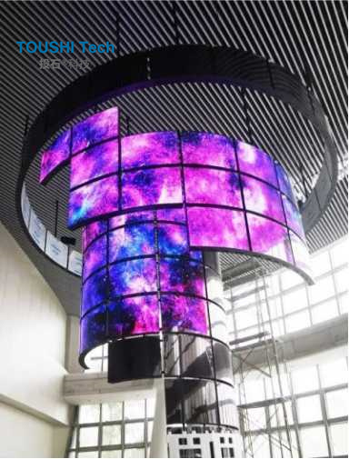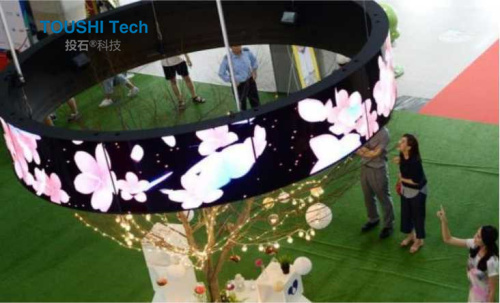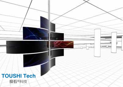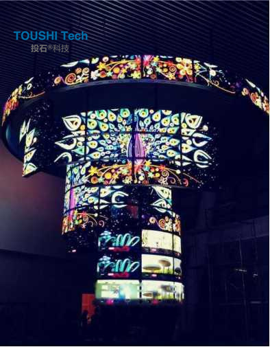2017年,中國第一個OLED曲?面屏項目在杭州白馬湖生態(tài)創(chuàng)意城的華數(shù)字電視產(chǎn)業(yè)園誕生。該項目采用了65片LG原裝的55EF5C開放型曲面OLED顯示屏,?用OLED柔性特點,由三層半徑依次為2米、4米、4.5米的環(huán)形從內(nèi)到外錯落一致環(huán)繞,宛如一只氣宇軒昂、挺胸展翅的鳳凰,生動地呈現(xiàn)了華數(shù)傳媒斗志昂揚的姿態(tài),恰好符合華數(shù)產(chǎn)業(yè)園建設(shè)新?代的信息化數(shù)字產(chǎn)業(yè)園的理念,為產(chǎn)業(yè)園帶來?無與倫比的震撼視覺。