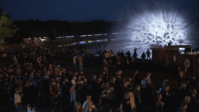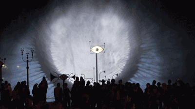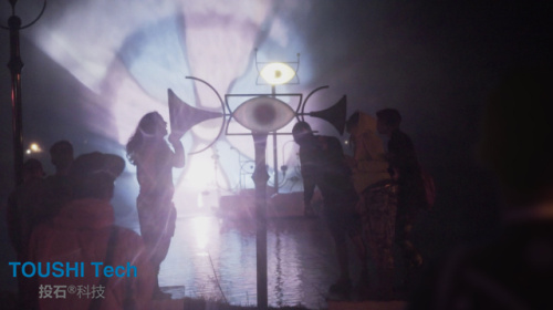 互動裝置Periscopista是在湖面上的一片巨大全息水幕,這是一個帶有迷幻星云效果并且在中間有個眼睛樣?xùn)|西的的巨型裝置。參與人群可以通過聲音和動作來控制它。