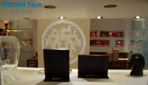 以水流的形式進行圖片的視頻展示。分為兩種形態(tài),一種成像展示形態(tài),一種為透明櫥窗形態(tài),可縱觀展廳全貌。