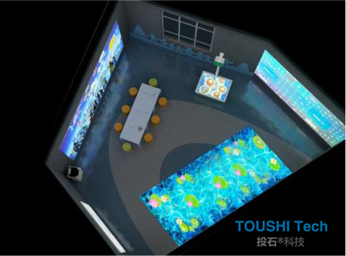 投石AR互動(dòng)成語(yǔ)墻可以單屏投影(最大可頭3*2米),占有空間小,投資預(yù)算小,很小的空間也可以有很強(qiáng)的互動(dòng)效果。也可以雙屏投影(最大可頭6*2米),專(zhuān)業(yè)的多通道融合技術(shù),可以快速實(shí)現(xiàn)無(wú)縫銜接的整體畫(huà)面。超大畫(huà)面可以達(dá)到更精準(zhǔn)的動(dòng)作捕捉。