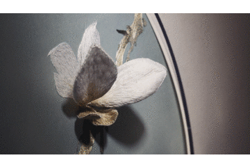 《木蘭》裝置設定為十分鐘開花一次,且很快又會枯萎,希望籍此表達生命的短暫與輪回。觀眾需要耐心等待才能看到花朵綻放的瞬間,以及翩翩飛來的蝴蝶。等待雖然漫長,但是期待感也會越來越強,并隨著花朵綻開的一瞬間被感動。