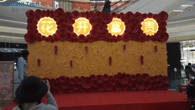 投石現(xiàn)有尺寸約3米*2米,由有300多束花組成,其中有60朵為動態(tài)花,其余為靜態(tài)花。