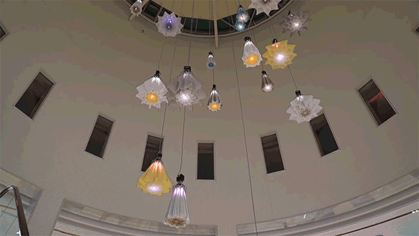 我們將動態(tài)的機械結構,齒輪,電機,連接上控制板,加入了程序感應系統(tǒng),靜立于人群中,在稍作等待地花開的那刻,一朵一朵直到最終章,你會發(fā)現(xiàn)他們最精巧之處。