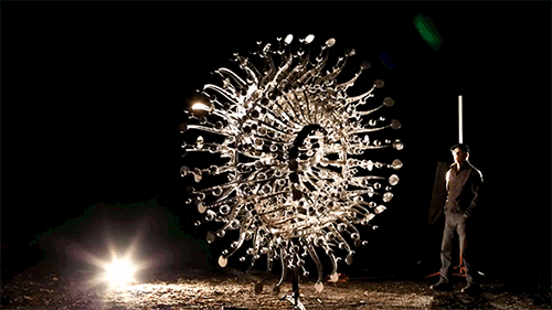 一旦有風吹過,這些雕塑立刻就動了起來,而且有一種生物般的怪異。。。