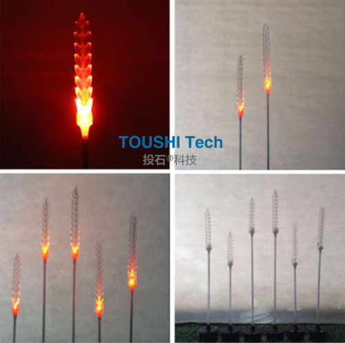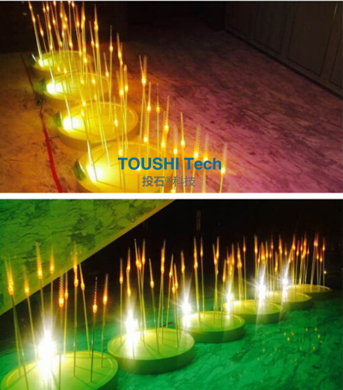 一叢叢閃亮的燈束來回的搖擺是不是很有意思。投石的這款搖擺燈外形可定制哦,像向日葵、玫瑰花、麥穗、圓球、郁金香花搖擺燈.....而且具有耐高溫、無輻射、顯色性好等特點哦。