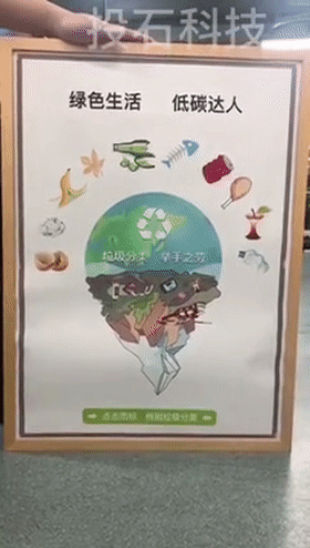 首先,按照產(chǎn)品中畫的提示,通過觸摸產(chǎn)品上的不同垃圾的圖案,來幫助了解和學(xué)習(xí)垃圾分類。