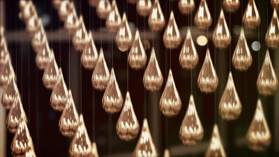 每顆空心的水滴重180克,用鋁制成,外層鍍上拋光紫銅,可防氧化或被銹蝕。從最上方到最底部,水滴流過7.3米的距離。