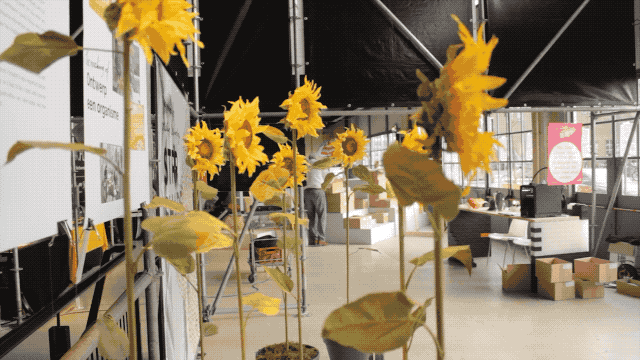 互動式的向日葵裝置,利用運動跟蹤傳感器使得這些向日葵裝置不再跟隨太陽,而是追隨任何從前面路過的人。