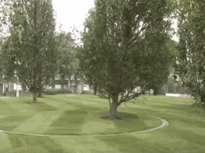 在英國的一個公園的轉(zhuǎn)角處有一片樹林,其中三棵樹對應的草皮用標準的圓形輪廓區(qū)別出來,并配置有按鈕,這是干什么的呢?