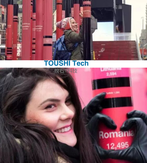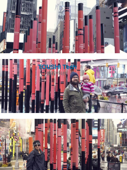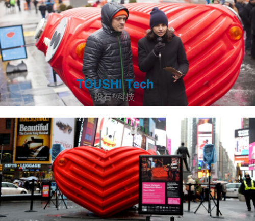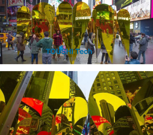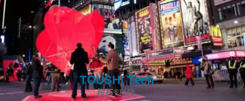 在光影下,“心靈之窗”可以扭曲和捕捉時代廣場的圖像,從這里看到的一切都是心形的。 360度無死角接吻攝像機裝置
