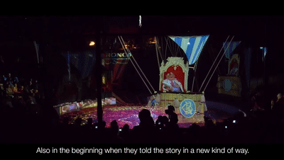 這場(chǎng)表演仍然以長(zhǎng)牙和尾巴、火紅的圓圈和雜技演員為特色,3D全息圖像將32米(105英尺)寬、5米(16英尺)深的舞臺(tái)填滿,為觀眾提供360度的視野。
