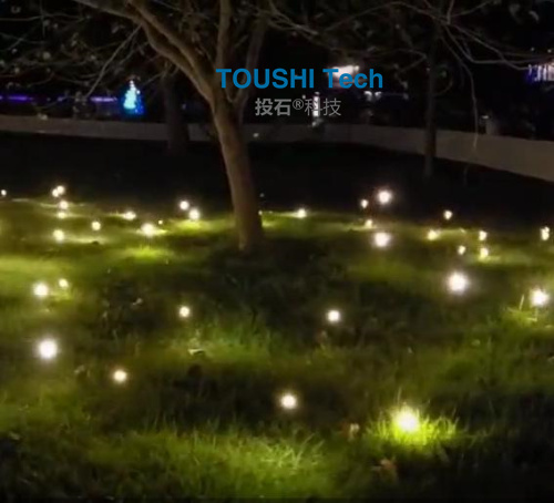 投石智能系統(tǒng)的仿生螢火蟲燈互動裝置材質(zhì)主要由不銹鋼殼體,表面靜電粉末噴塑處理構(gòu)成。它適合固定地面安裝在草坪,田野,會所,公共空間裝飾及氛圍營造。 互動款螢火蟲:當游客走入主要互動區(qū)域,這里有紅外線感應(yīng)裝置,結(jié)合聲光效果,就可以創(chuàng)造出如螢火蟲環(huán)繞的奇幻美景。 投石案例: